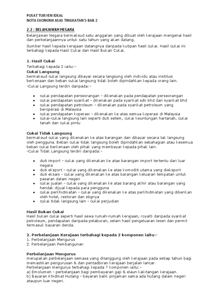 Nota Ekonomi Tingkatan 4 Bab 31. Nota Ringkas dan Padat Ekonomi Tingkatan 5 SPM Bab 1 dan 2. Latih Tubi Tingkatan 1 dan 2.